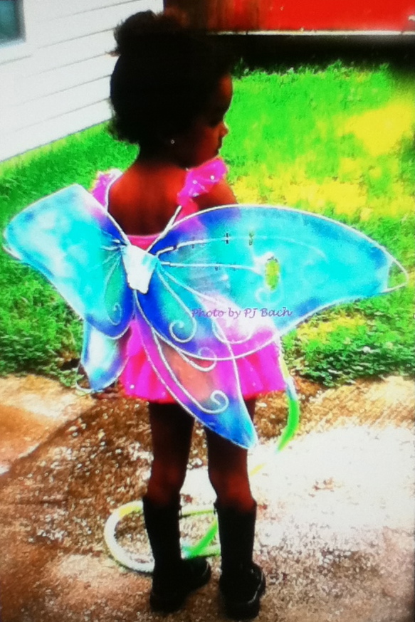 GreatGranddaughter sweet Anaiya... she was 4 and trying to jump rope but her wings kept getting in the way... She'd worn all her favorite things; pink tutu, fairy wings and biker boots... What a sweet memory.